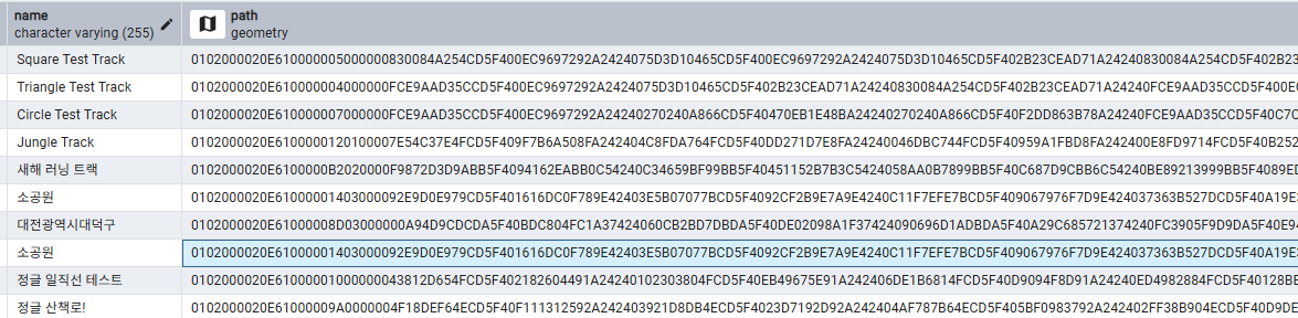 이는 PostGIS가 WKB(Well-Known Binary) 기법으로 공간의 좌표들을 압축하여 저장하기에 가능합니다.