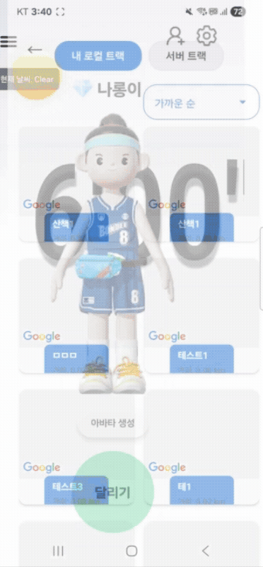 저희 앱에 지정된 경로들을 사용자에게 제시해주고 그중 하나를 선택하여 그걸 경로 안내와 함께 달리고 랭킹을 세우는 기능이 있었습니다.