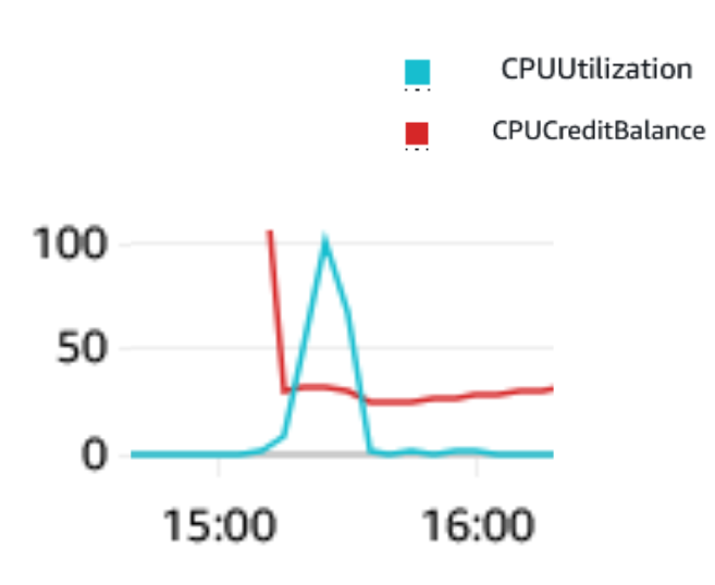 T 타입 인스턴스에서 작동하는 CPUCreditBalance가 급격히 떨어지는 성능 절벽 현상과 CPU 사용량이 약 99.8%까지 올라가는 문제가 있었습니다.