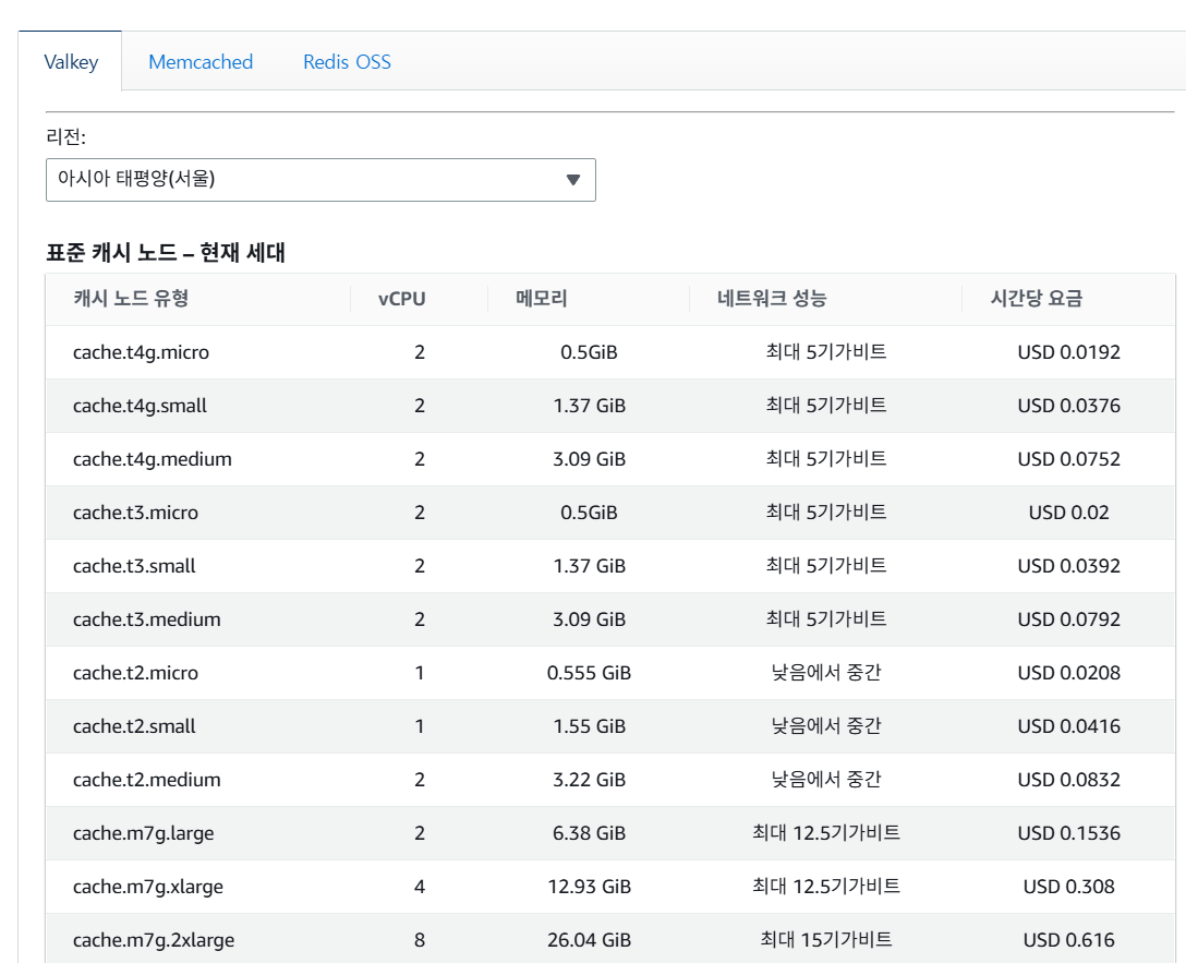 AWS ElastiCache 기준으로 약 25% Valkey가 저렴합니다.
