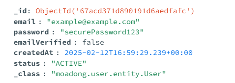 Spring + MongoDB 기반으로 동아리 담당자 쪽 회원 가입 기능 개발에서 "엔티티의 기본 값이 DB에 저장되지 않은 문제"가 발생했습니다.